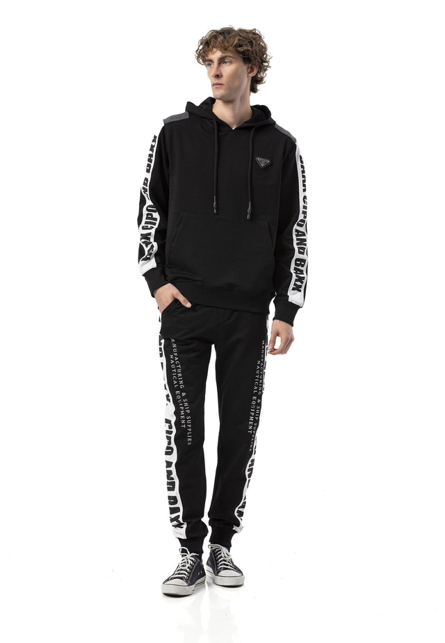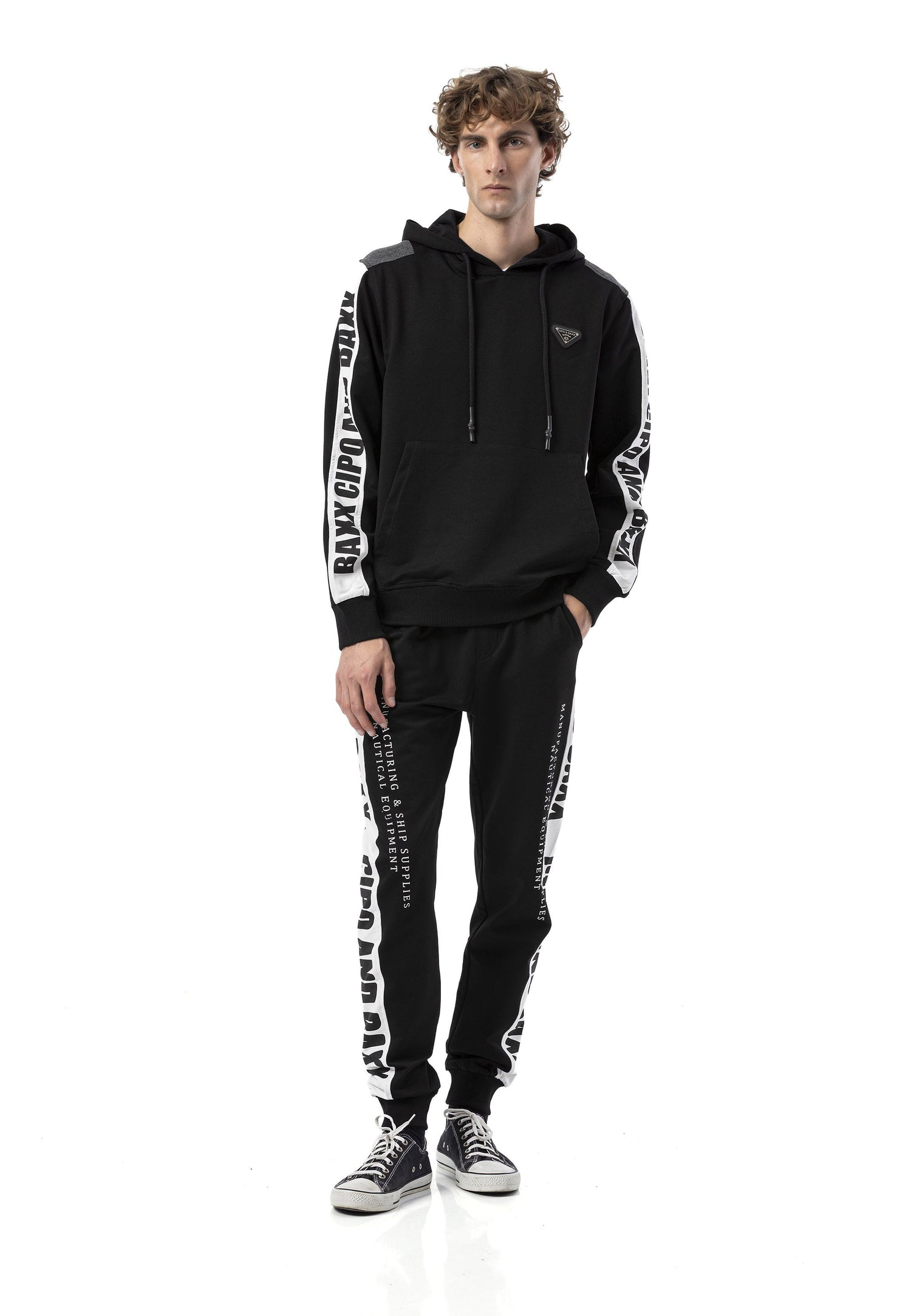 CIPO & BAXX markalı CLR162 erkek eşofman takımı, sportif dinamizmi göz alıcı sokak stiliyle birleştiriyor. Takım, kol ve paçaları boyunca göz alıcı beyaz yazılarla süslenmiş siyah kapüşonlu üst ve uyumlu eşofman altı parçalarından oluşuyor. Yüksek kaliteli işçilik rahat bir uyum sağlarken, modern kesimi hareket özgürlüğü sağlıyor. Günlük, spor veya günlük rahat bir görünüm için ideal.