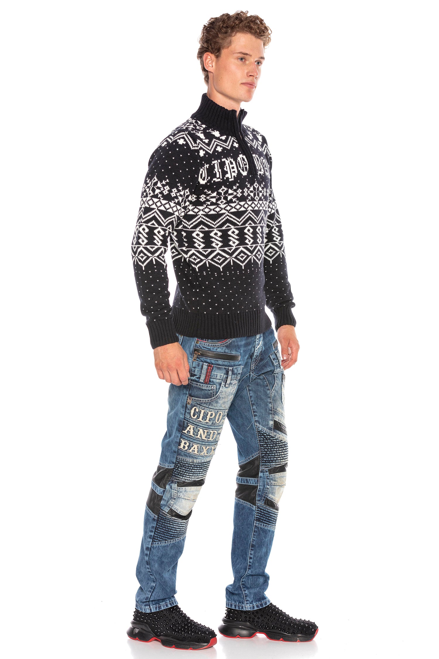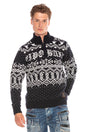 CP233 Dik Yaka Fermuarlı Desenli Kalın Kazak