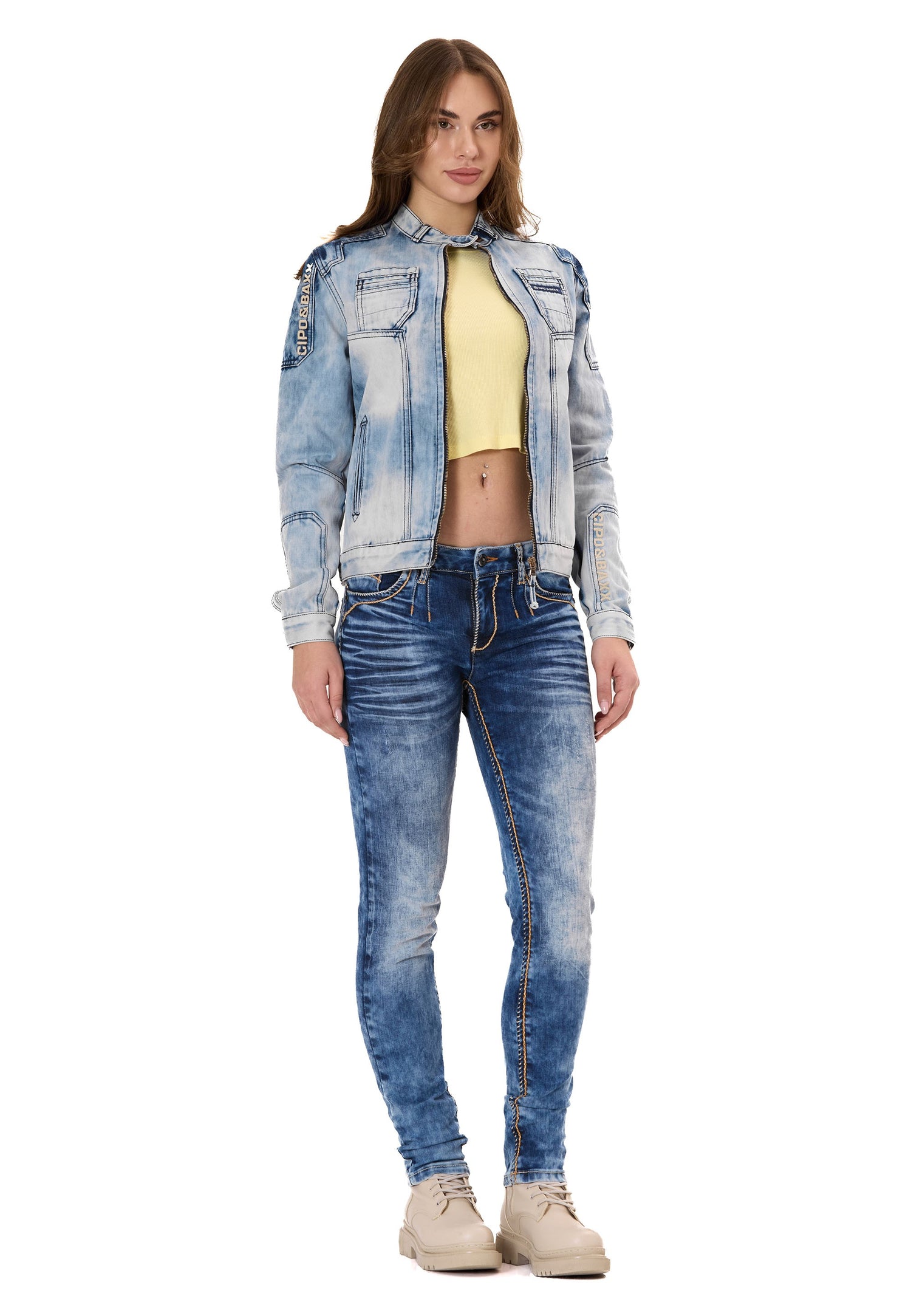 Cipo & Baxx WJ233 Kadın Kot Ceket, modern çizgisi ve şık detaylarıyla denim tutkunlarının favorisi olmaya aday. Özenle tasarlanmış kesimi, kadın vücuduna uyum sağlayarak hem zarif hem de sportif bir duruş sunar.