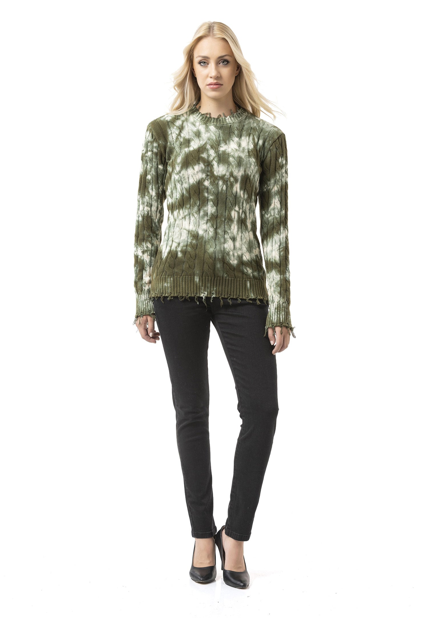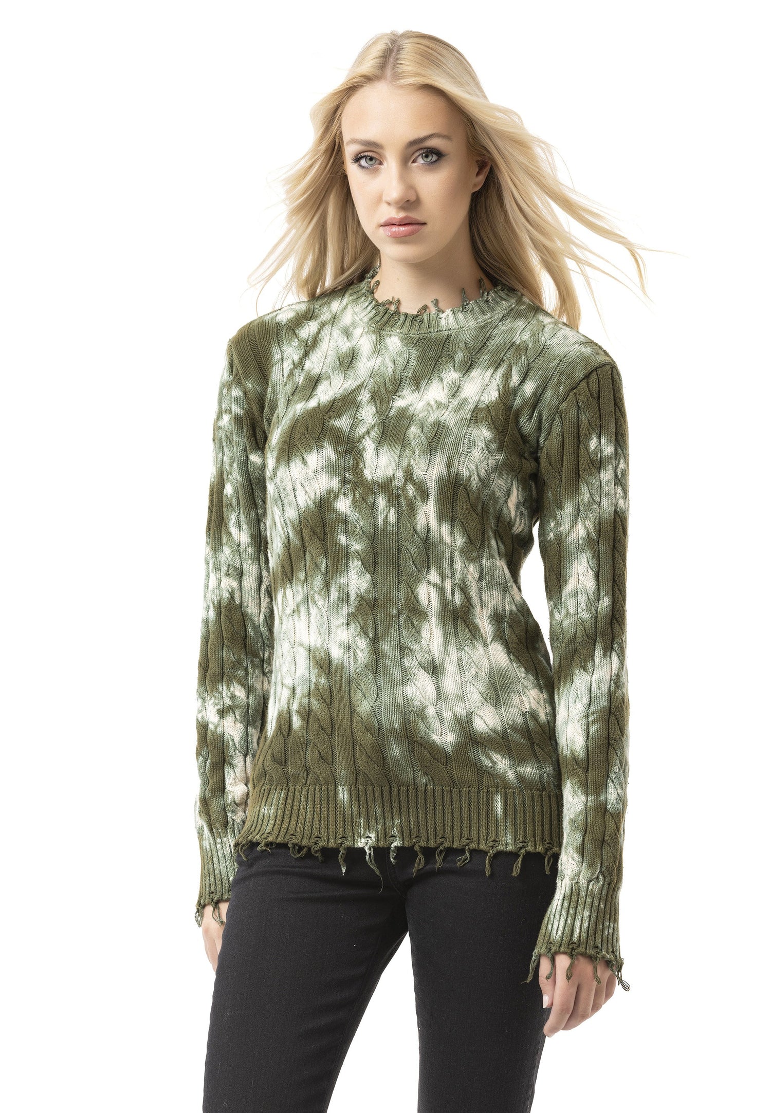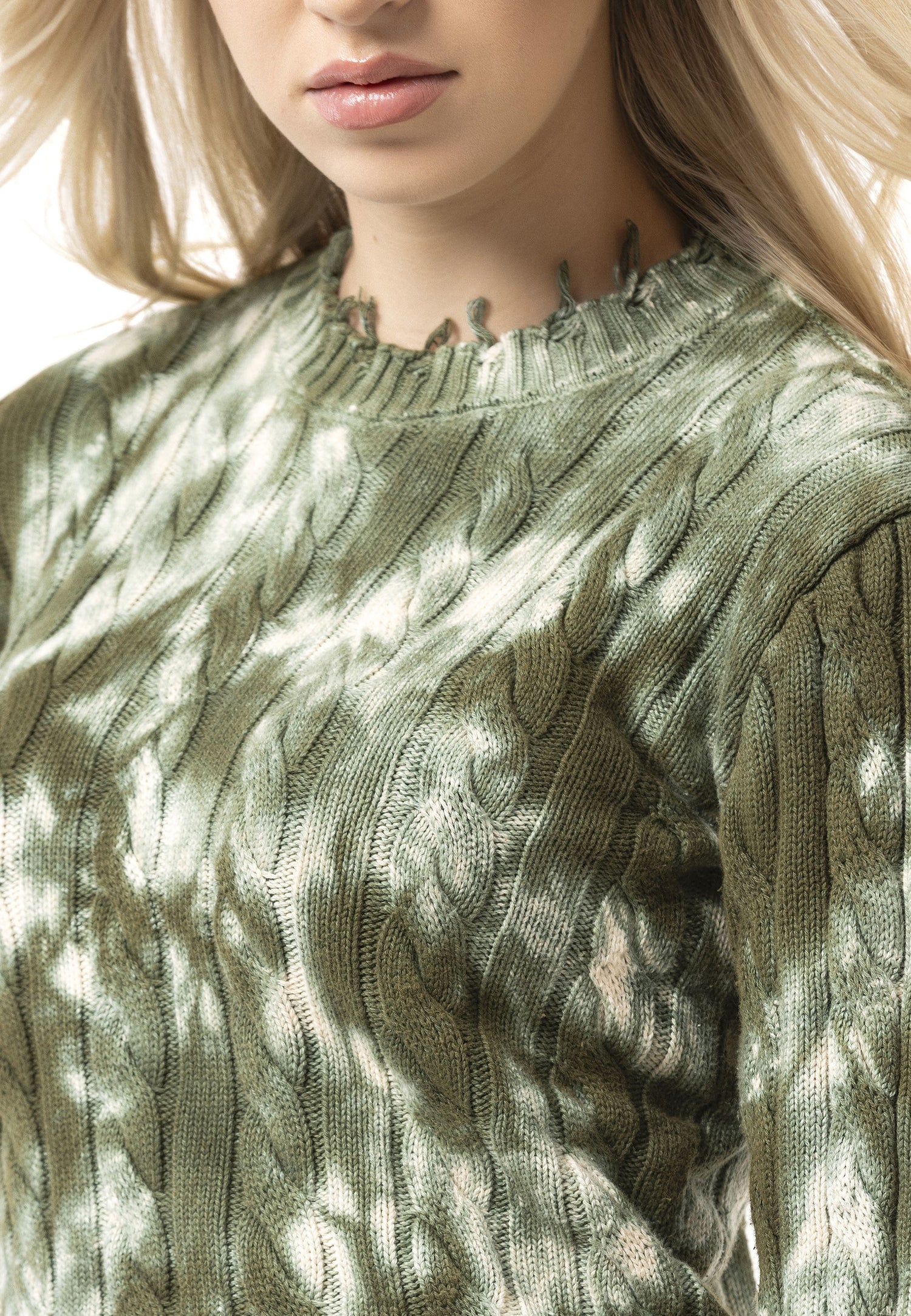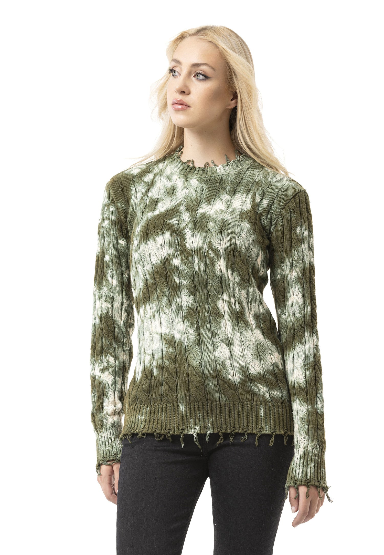 WP268 Kadın Örgü Kazak – Tie-Dye Desenli ve Kabartmalı Yapılı Kazak | Günlük ve Sokak Giyimine Uygun Modern ve Rahat Bir Görünüm - GREEN / M
