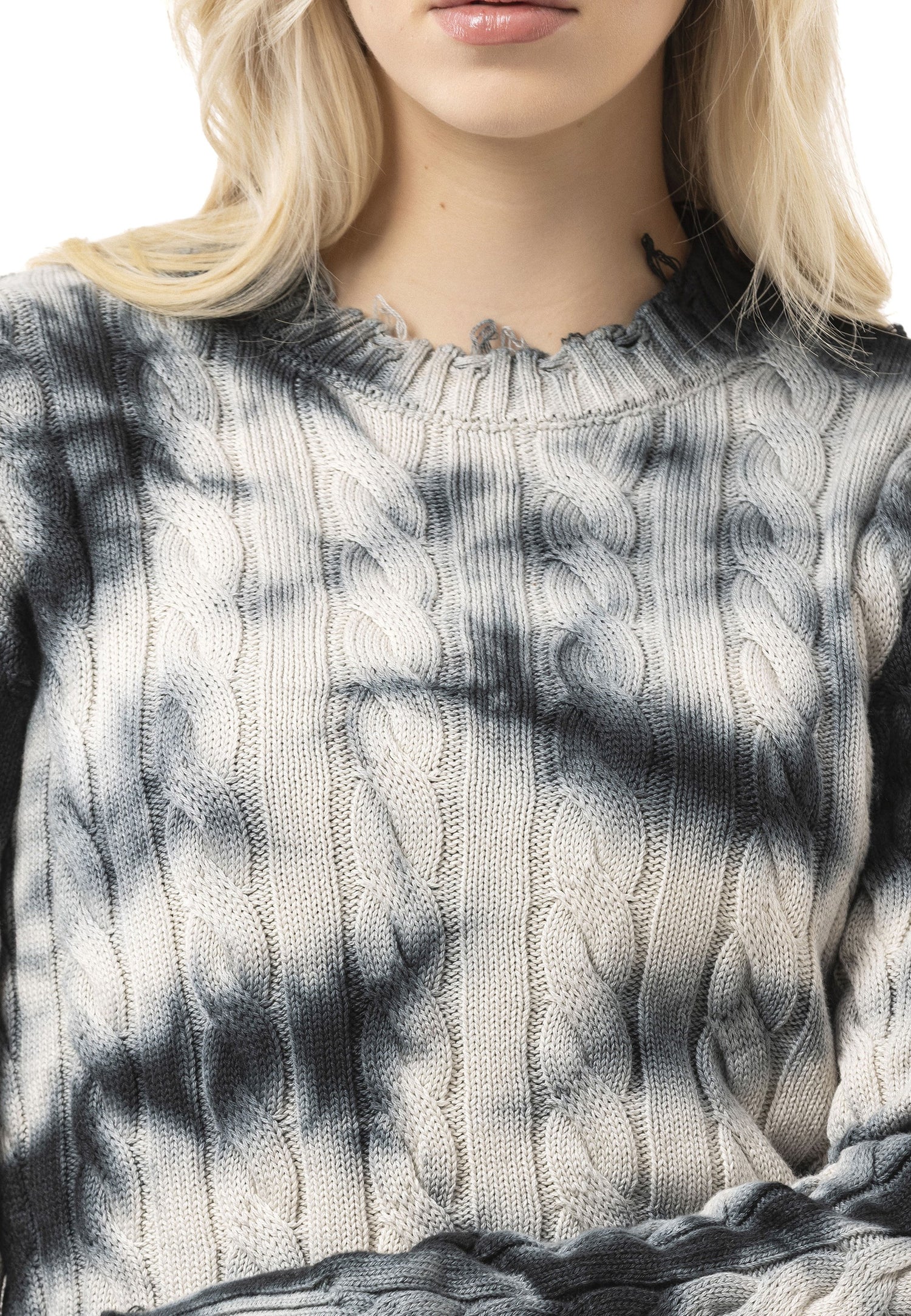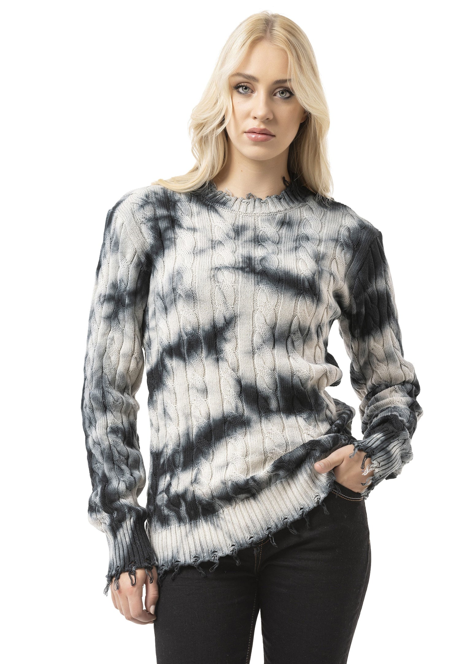 WP268 Kadın Örgü Kazak – Tie-Dye Desenli ve Kabartmalı Yapılı Kazak | Günlük ve Sokak Giyimine Uygun Modern ve Rahat Bir Görünüm