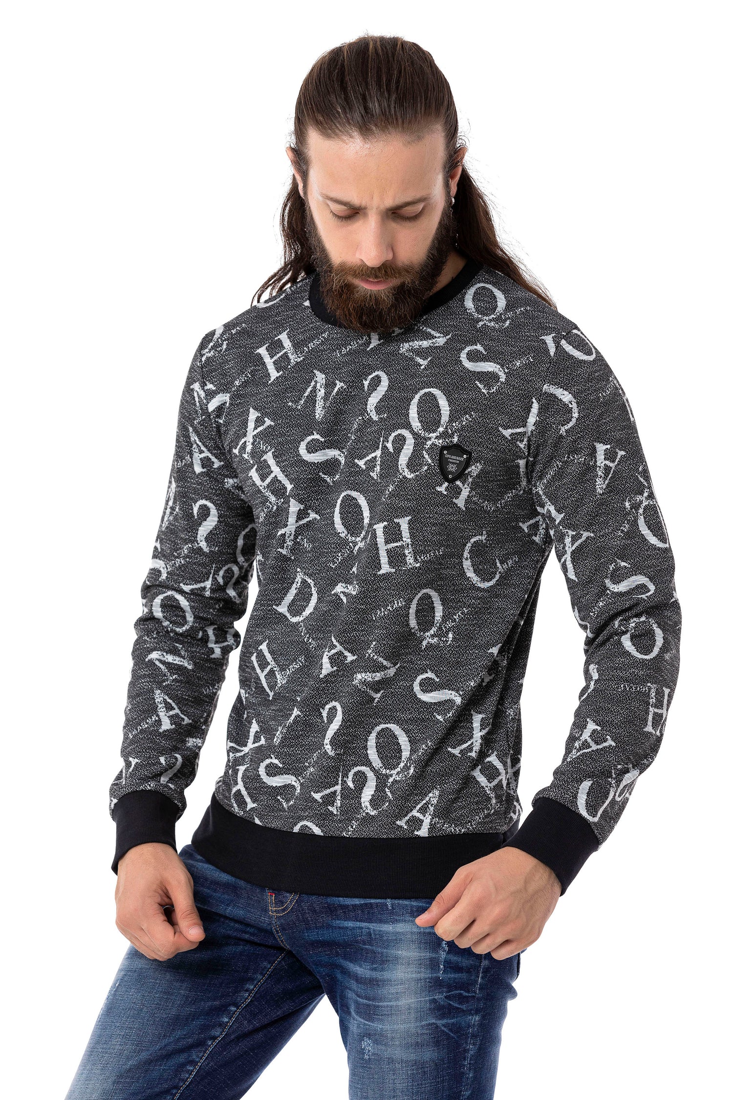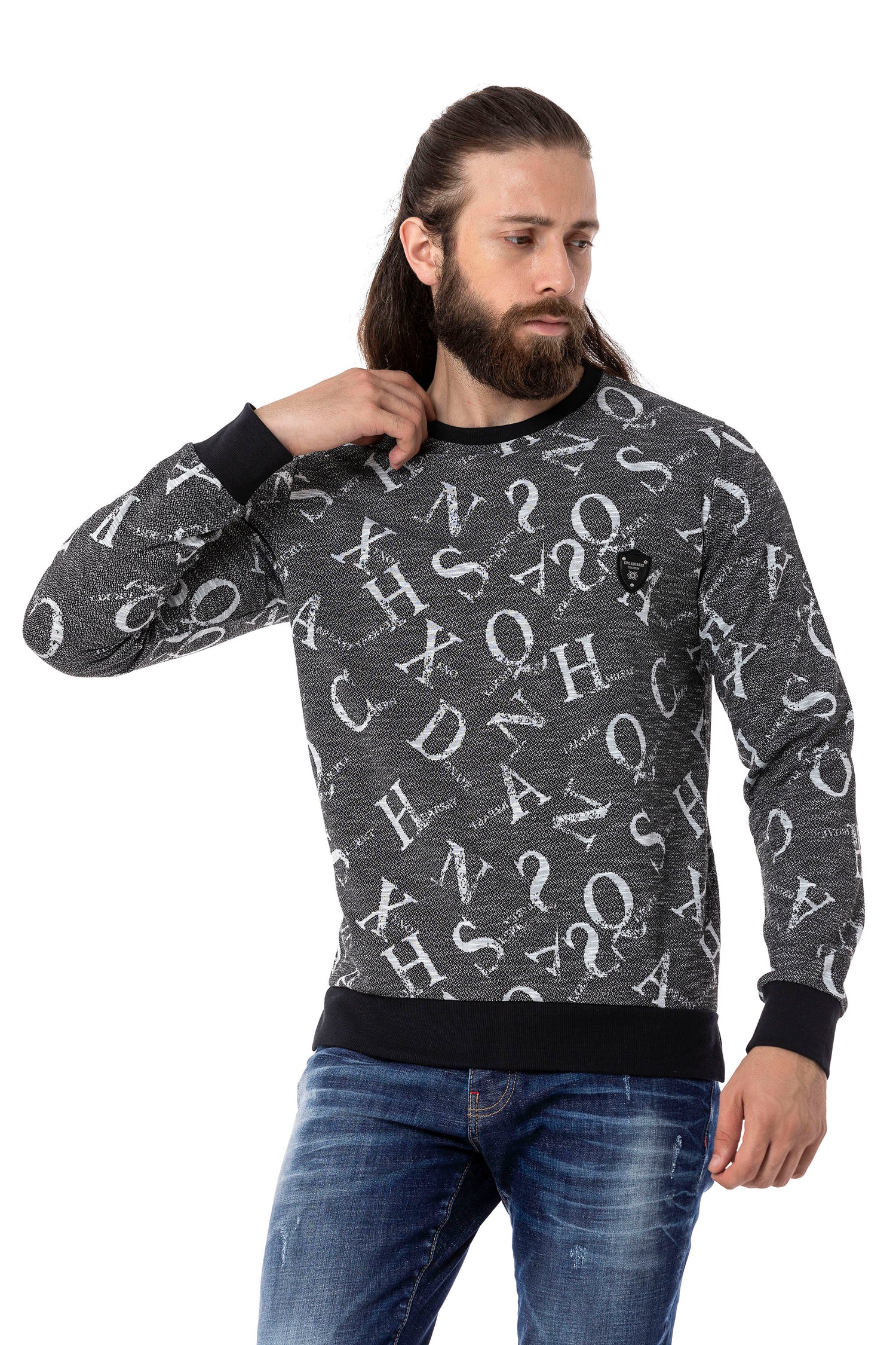 CL513 O Yaka Desenli Kalın Sweatshirt